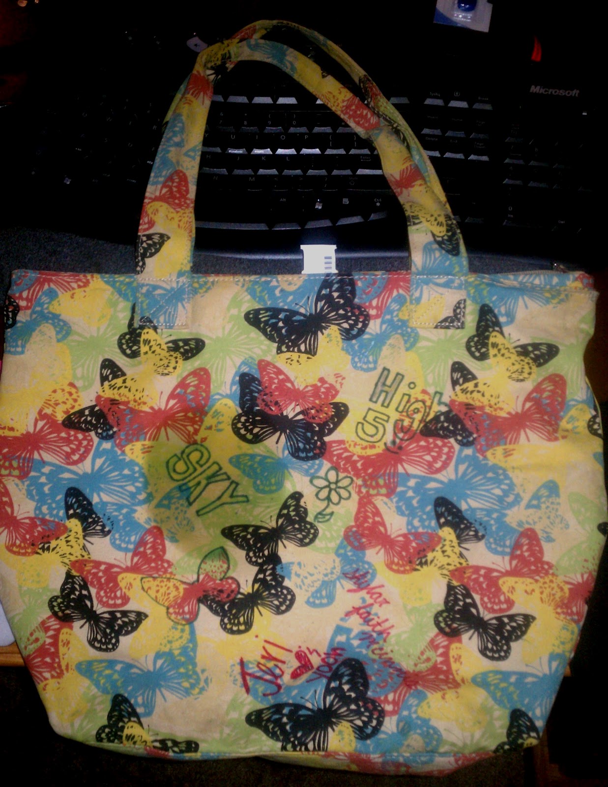 This is the (almost) before photo of the butterfly purse, sharpied galore: